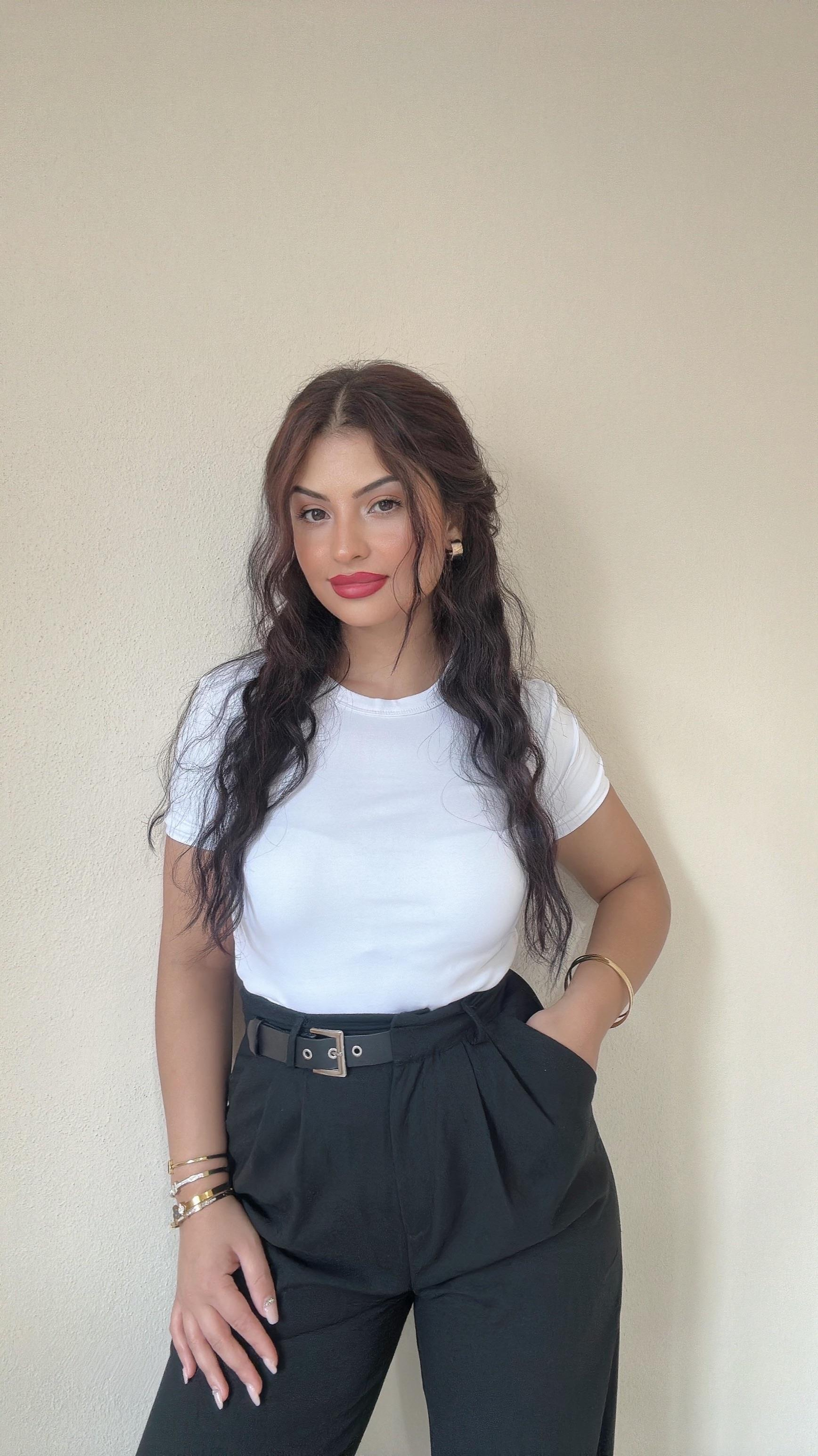 Bella Bisiklet Yaka Basic Tshirt - Beyaz