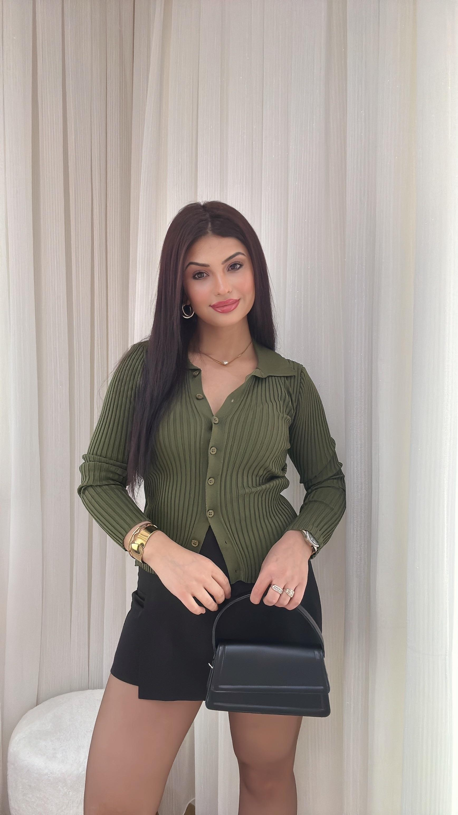 Cozy Düğmeli Polo Yaka Triko - Yeşil