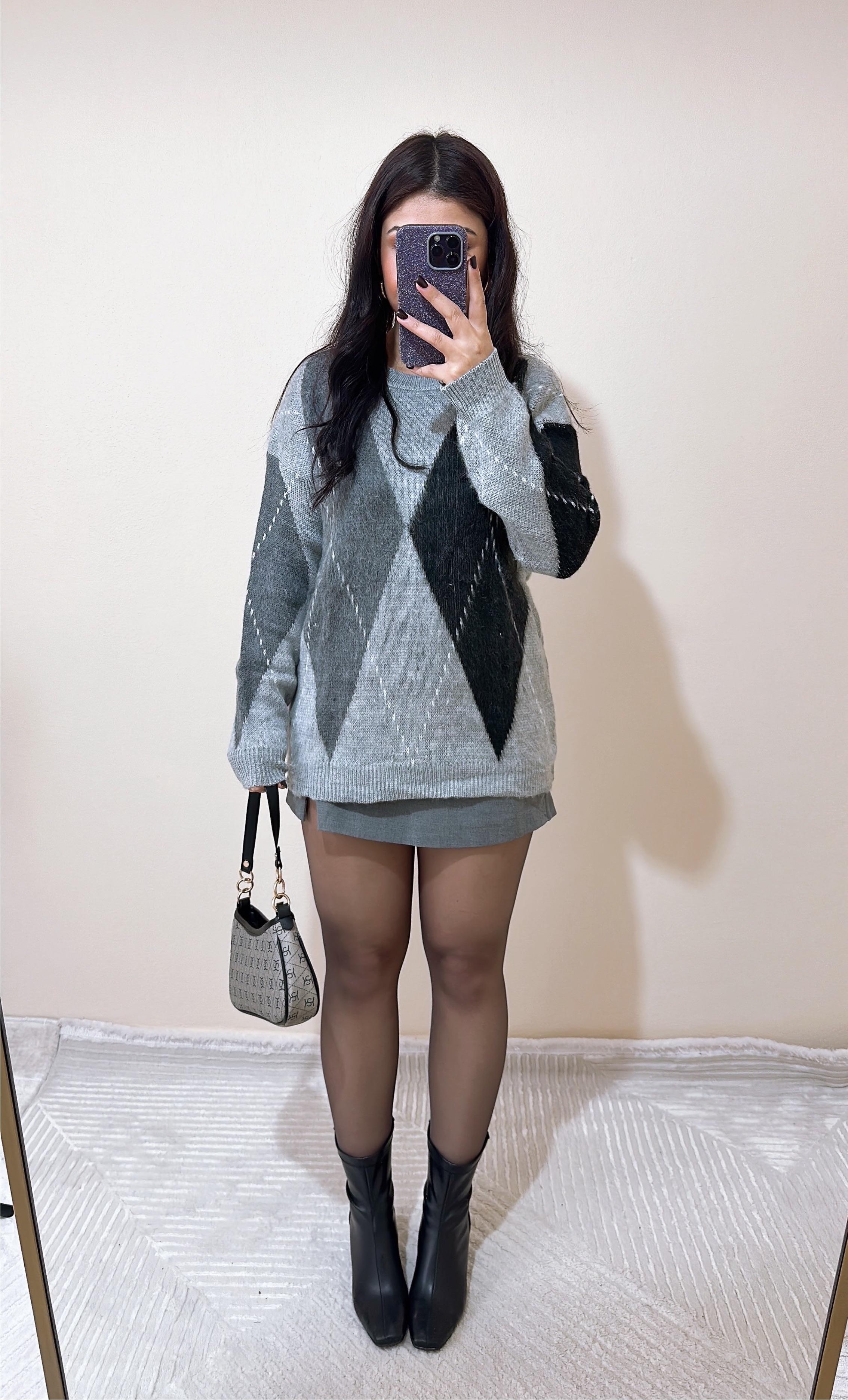 Hariry Baklava Desen Yumoş Kazak - Gri