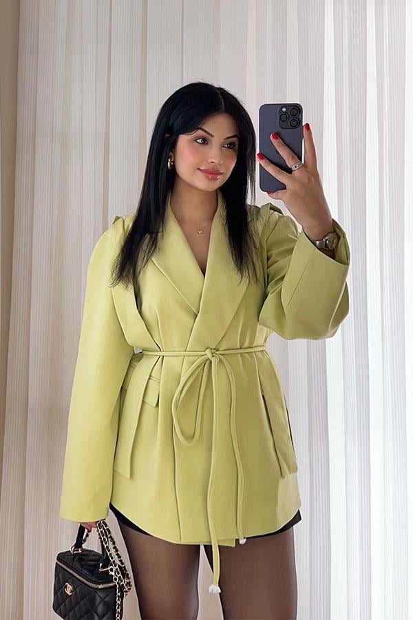 Kuşaklı Tasarım Blazer Ceket - Yeşil
