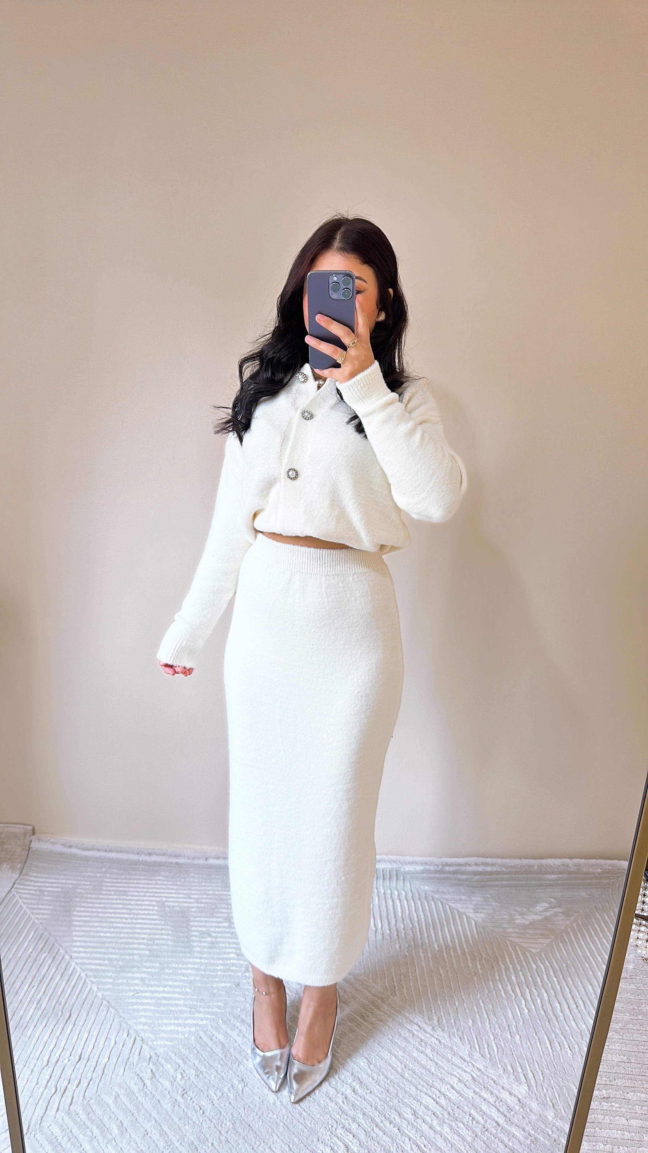 Missa İnci Düğmeli Yumoş Takım - Beyaz