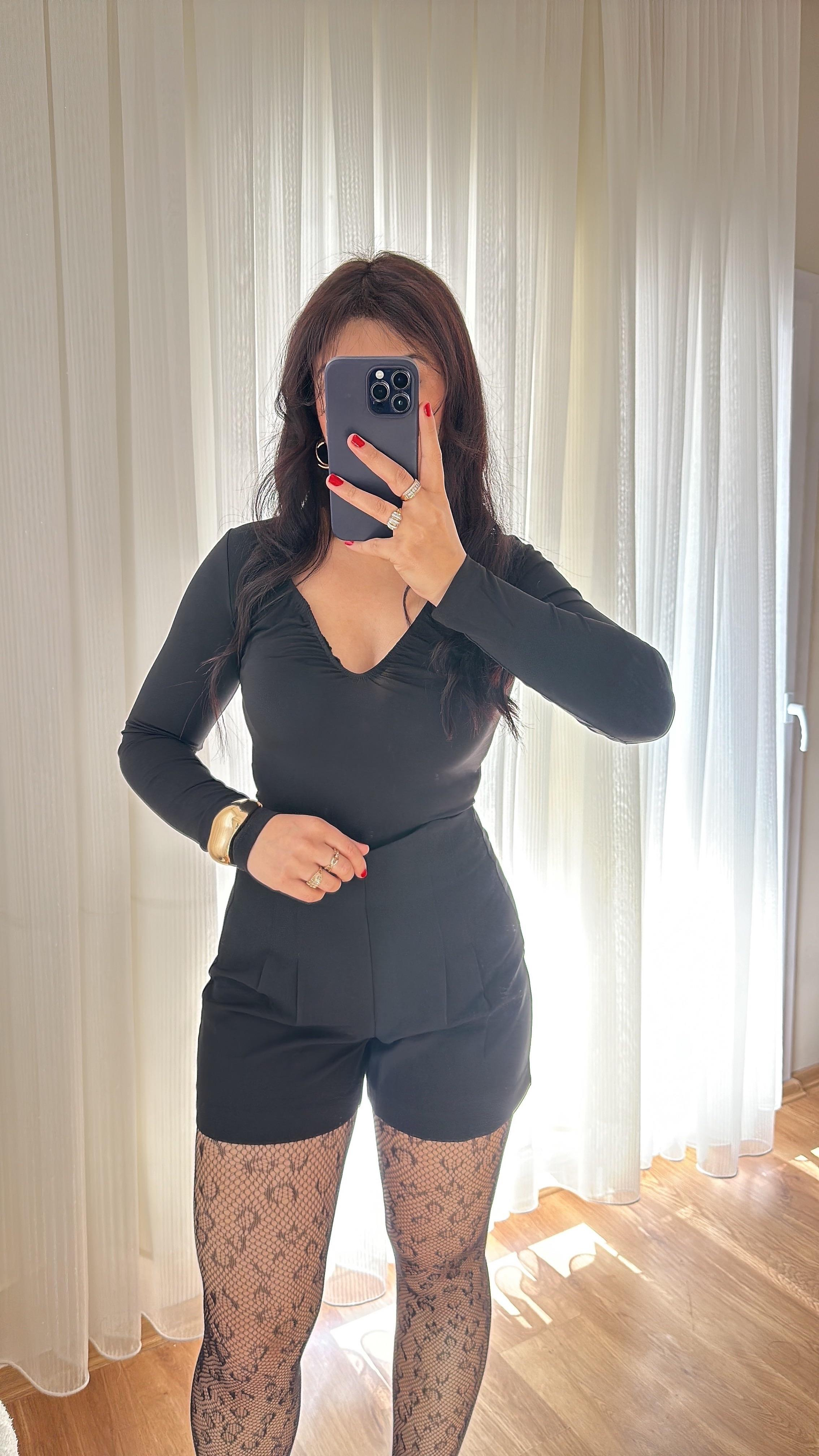 Rasy V yaka Siyah Bodysuit