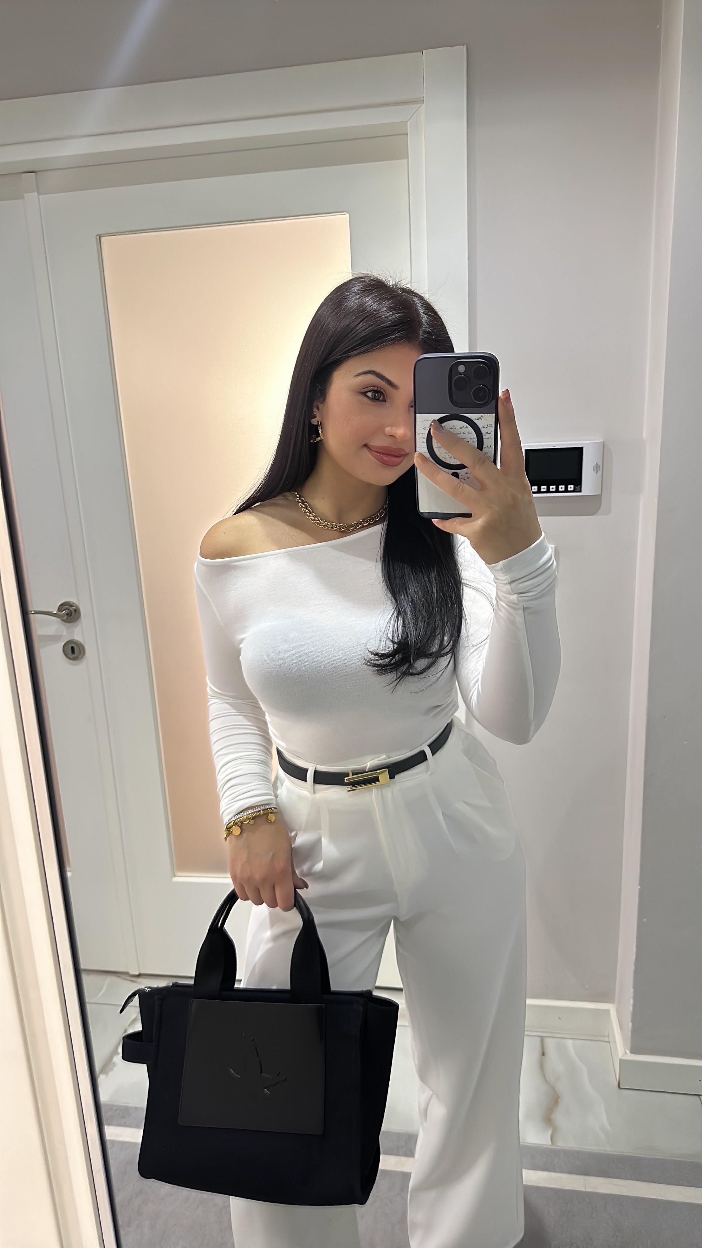 Talya Marka Model Degaje Yaka Bluz - Beyaz