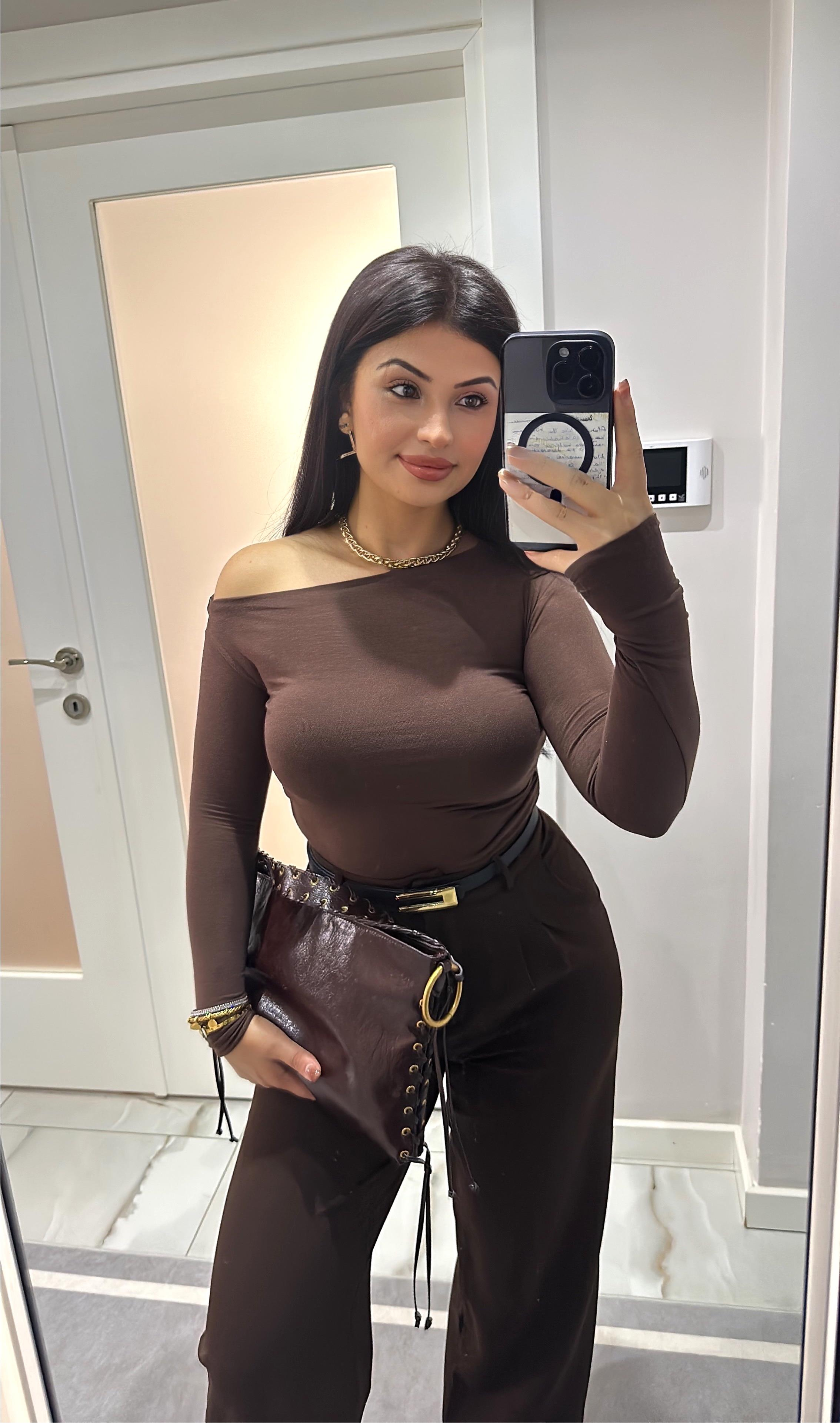 Talya Marka Model Degaje Yaka Bluz - Kahve