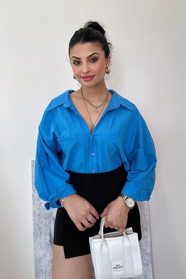 Tensel Kumaş Oversize Gömlek - Mavi
