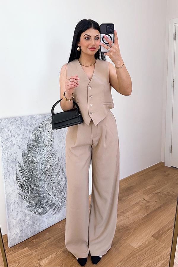 Yelek Pantolon Takım - Sütlü Kahve